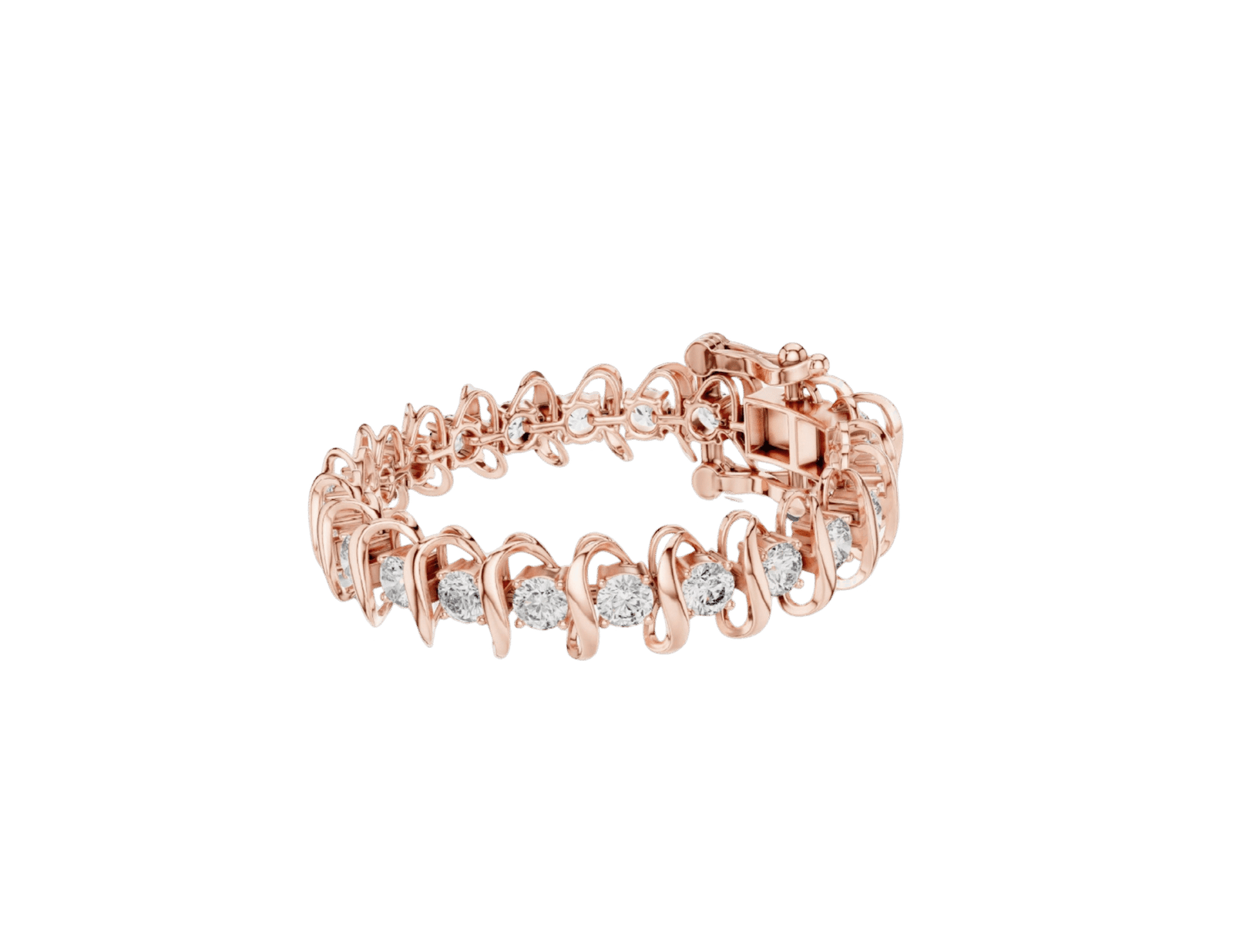A striking rose gold bracelet featuring prominent, floral-inspired diamond clusters.