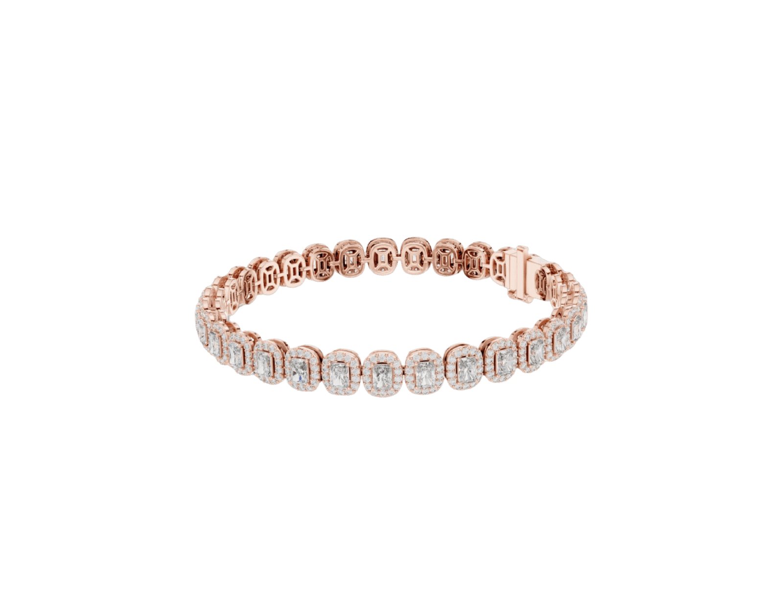 An eye-catching rose gold bracelet with a distinct geometric diamond pattern.