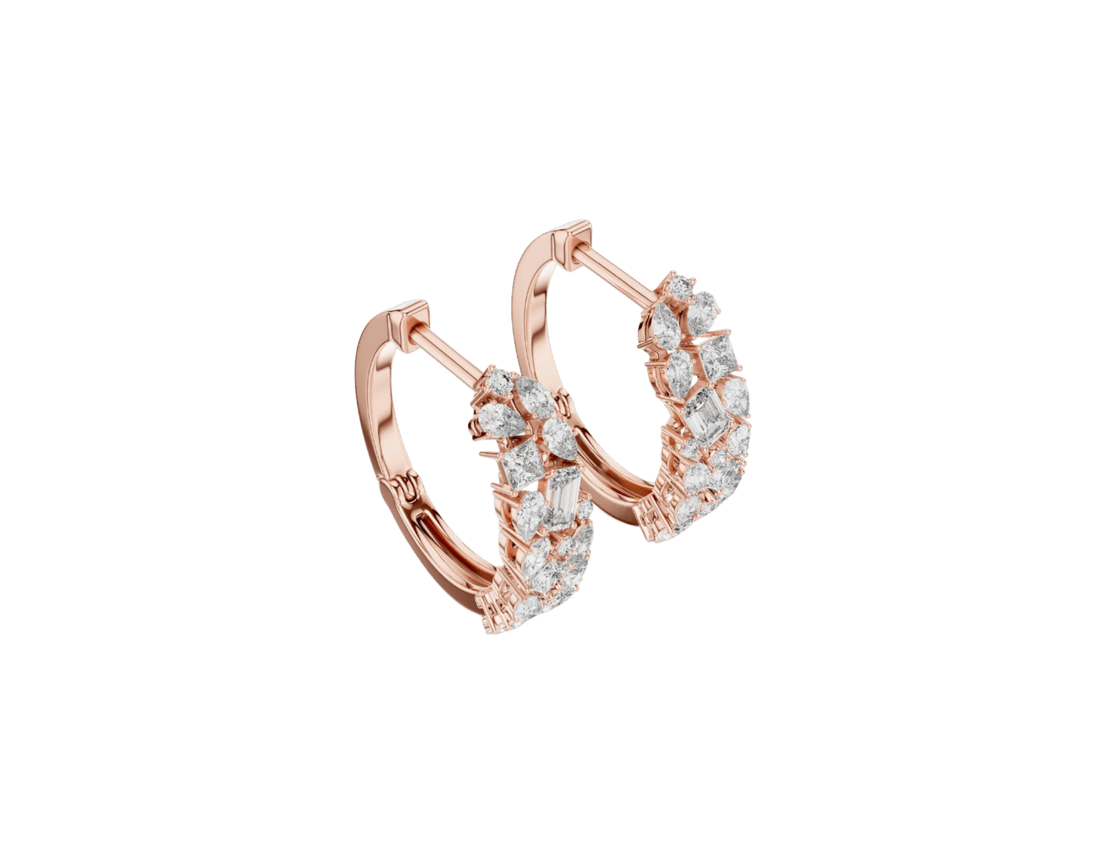 Stylish rose gold double-hoop earrings intricately set with diamonds.