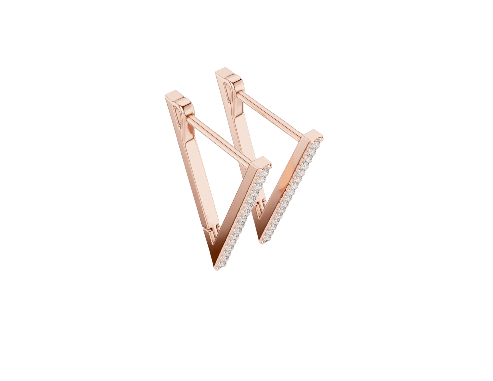 Modern rose gold V-shaped earrings with sleek diamond accents.