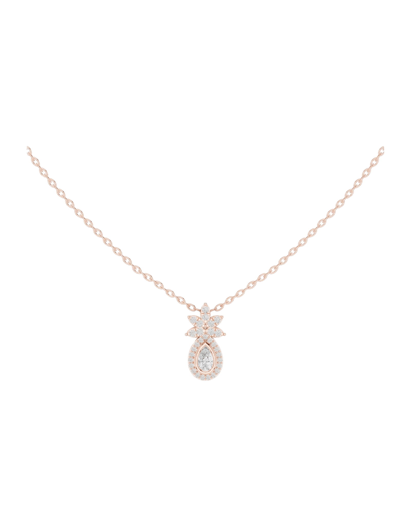 A subtle rose gold pendant featuring a small, brilliant diamond cluster or single stone. P-20809: A unique rose gold circular pendant with an intricate, diamond-studded Celtic-inspired openwork design.